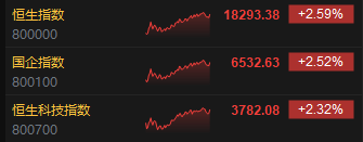 7月12日消息,港股三大指数高开高走,截至收盘,恒生指数涨2.59%,报18293.38点,恒生科技指数涨2.32%,国企指数涨2.52%。盘面上,科网股齐涨,美团、京东涨近5%,阿里巴巴涨近4%,腾讯涨超3%;内房股全天涨势强劲,世茂集团涨超14%;香港地产股亦涨势活跃,恒基地产涨超7%;体育用品股涨幅居前,李宁涨近8%;银行股普遍走强,招商银行涨近5%;大和称哈马斯接受停火协议,海运股普遍承压,中远海控跌超3%。