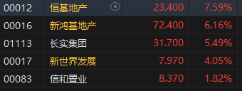 香港地产股亦涨势活跃,恒基地产涨超7%。富瑞发表研究报告称,香港住宅楼宇销售数据显示香港楼市上半年正在复苏,对发展商来说属利好,即使第三季新盘或有更多降价,但强劲的租赁活动将支撑资产收益率并吸引投资需求,变相亦有助于销售,故此该行仍偏好发展商股多于收租股。